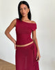 The Calypso top in sheer red knit offers an off-the-shoulder t-shaped design, with a longline length that ends just below the belly button. Complete the co ord with our matching midi skirt, Leysa.