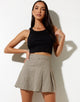 Keep your wardrobe in check with our Carga skirt. In a small brown and cream checked print, it features a mini fit, wide waistband with belt loops, and pleat detailing. Style with a black crop top, necklace, and chunky boots to complete this look.
