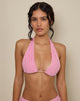 The Cerry top in pink stripe towelling fabric. A wide triangle bikini top with thick halter neck and single tie detail at the back. Pair with matching Eunia micro shorts.