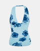 The Cosimo top in a jersey bold floral blue fabric. Boasting a plunging halter neckline and a regular sleek fit. Complete with lined cups. Pair with our Eunia shorts.