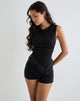 The Dusya top in cupro black features a sleeveless design, finished with an asymetric hemline with fringe and a tie to the side. Pair with our Eunia shorts.