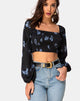Fashion is in full bloom with our Elina floral top. This fitted, shirred detail crop top features long sleeves with elasticated cuffs, a square neckline, and blue floral print against a black, satin finish. Team this top with our Wren Mini Skirt in Pu Black for a va-va-voom effect at your next social event!