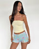 The Erna short in a sequin blue blooming flower print. Featuring a low rise, hot pant fit with a thick elasticated waistband. Paired with the Shaelo bandeau.