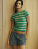 Glenda Jersey Tee in Green and White Stripe with Str...