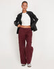 Low rise wide leg cargo trousers in burgundy. Featuring an elasticated waist band, large pockets, belt loops and a zip fastening. We love to style with our Olivia jacket.