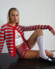 Henidar Cardigan in Red and Grey Stripe with Cherry Emb