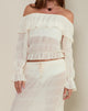 Kalena Long Sleeve Bardot Top in Chiffon Plisse Ivory