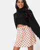 The Khabel skirt is enough to send you dotty! Get the perfect print with our nude and black polkadot and update your wardrobe! With a high waist, and mini a-line fit it can be easily paired with a cropped jumper, casual yet chic.