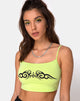 Attract the right tribe whilst having the hottest style. In a neon green with black tribal placement, the Kini top features a cropped bodycon fit with square neckline and thin straps. It's a must paired with the Jubie trouser.