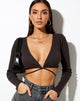 Add some edge to your basics collection with our Lieneva top. In a ribbed pearl black, this crop features long sleeves, a low cut v neckline and wrap strap detailing. Style it up with some jeans and barely there heels.