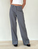 The Abba trouser features a low rise fit with a centre-front zip and button closure, straight legs and turned-up hems in a tailored fabric with grey pinstripes. Pair with our basic Bovillo top.