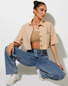 Give your everyday look an edge with our Marka top. Featuring a cropped fit, short sleeves and button up front with collar in a pencil stripe print. Style it open over a nude crop and add our parallel jeans in light wash.