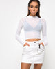 Slay the summer with care free vibes and mini skirts! The mini broomy skirt, now in a white wash, features a high waisted mini fit with belt loops and pocket detailing. Go head-to-toe chic with the Rhala top and sleek hair for a fresh style.