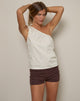 The Miringa top in a candy stripe yellow print. Boasting a one-shoulder strap complete with bow detailing. Finished in a regular loose style. Pair with the Eunia shorts.