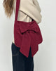 In a maroon canvas fabric, the Nagi bag features a rounded body with a chunky strap and an oversized bow on the front.