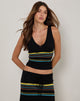Natcha Vest Top in Black with Brown and Blue Stripes