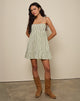 The Nikita mini dress in a green check seersucker fabric. Featuring adjustable tie straps and a square neckline. Complete in a smock style with lightly pleated hem.