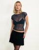 In a Yellow and navy heart flock printed fabric, the Nova top features full length hem with a bodycon silhouette, cap sleeves and a boat neckline. We've paired with our Casini skirt.