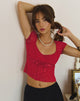 Rada Top in Red Heart Flocked Mesh