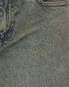 Our classic Roomy jean with a twist. Featuring a floor length, wide leg design with a raw hem, low rise oversized fit, pocket detailing and branded back tab, buttons and rivets, in a vintage blue wash rigid denim.