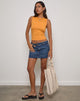 The Runaba top in a faded orange fabric. Boasting a sleeveless tank style with boat neckline and cut out detailing on the back. Finished with tie detailing on the upper back for an adjustable fit. Get the look with our denim mini skirt in heritage blue.