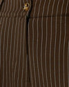 Elevate your wardrobe with our Sakila trouser. In a brown pinstripe, they feature a wide leg with high waist, button fastening and belt loops. Add the matching Safar vest and chunky trainers for a super chic look.
