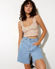 This season, make room for the 70's prairie girl floral. In a nude floral, the Seyko top features a cropped fit, shirred hemline, button detailing with scoop neck and chunky straps. For a casual look pair with a denim short.