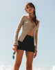 Add a neutral hue to your look with the Sujata cardi. In stone, it features long sleeves, a scoop neckline and adjustable tie straps. Simply style with the Ima skirt in black.