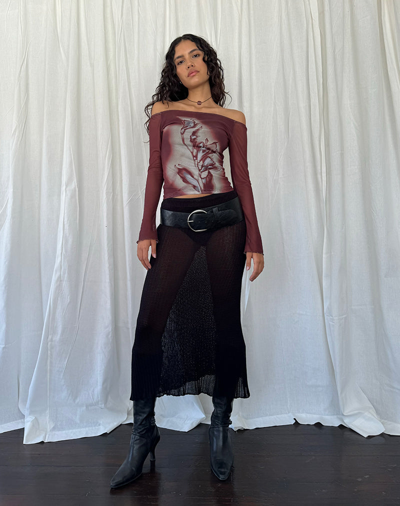 Its knit season! Upgrade your wardrobe with our Tanisha skirt, in a black Rib knit this skirt features a midi length with a low rise fit.