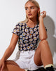 Tiney Crop Tee in Daisy Love Black