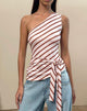 Uberta Asymmetric One Shoulder Tie Top in Diagonal Stripe Pink