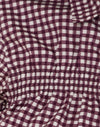 The Ulsan shirt in mini gingham wine print on a poplin fabric base. Short sleeve blouse with puffball sleeves, collar and regular length hem. Detailed with a button down front finished with shirring detail above the chest. We've styled with the Picu shorts.