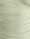 In a cream cupro material, the Vernia top has batwing sleeves and a plunge V-neckline. Finished with a ruched torso and bust.