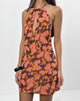 The Veslina mini dress in an eco-printed chiffon with a furnishing floral print. Featuring a cut-out detail at the front, functional halter neck and fabric ties with an open back detail.