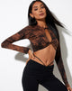 Elevate your look with our Zen top. In a black and rust tie dye, this crop features long sleeves, bodycon fit and a front twist with cut out detail. Style with our black Sakeri flares and docs.